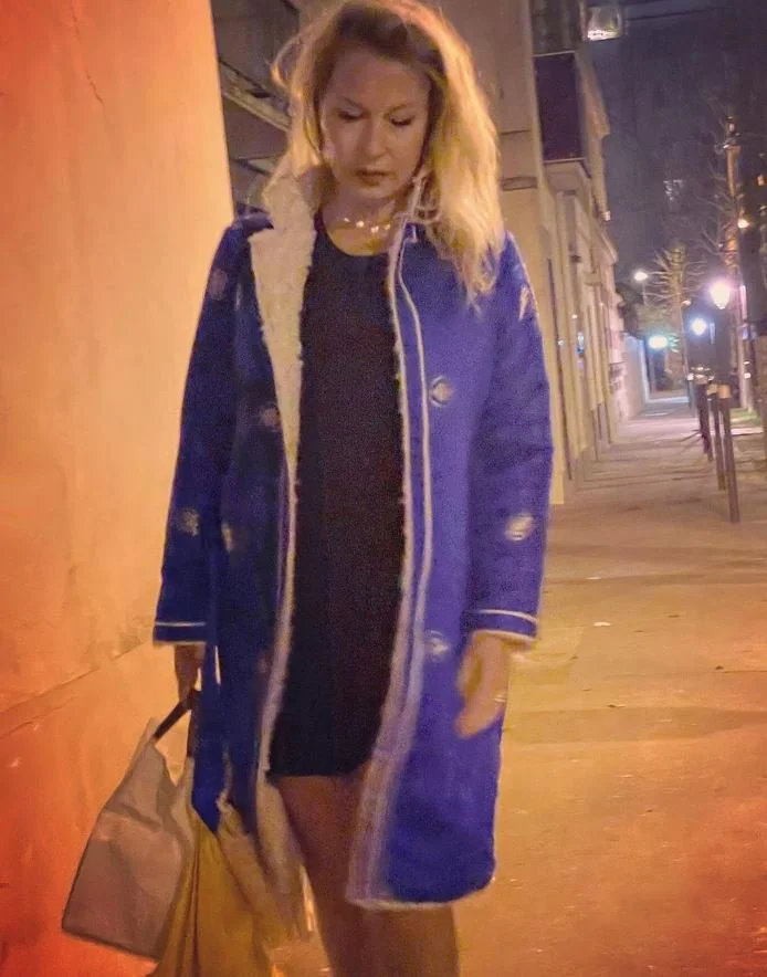 La Mère Noël est en bleue ce soir, sous l’oeil bienveillant de la lune et en route avec le superbe manteau offert par mon adorable médecin tibétain Reishar Namgyal.